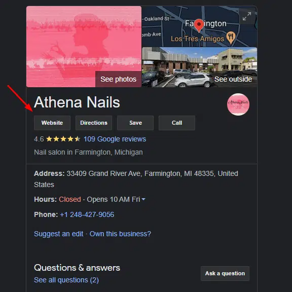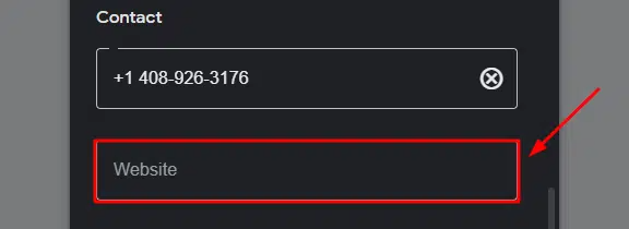 Scroll down to find the Contact option, there will be a website box where you can add the business information website link from top-spa.net. The link for each business will be included in the list we provide you before.